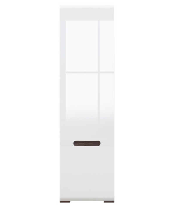 1 распашная глухая дверь, за которыми в верхней части расположена 1 ниша и выдвижная металлическая штанга для одежды и в нижней части расположена 1 ниша;